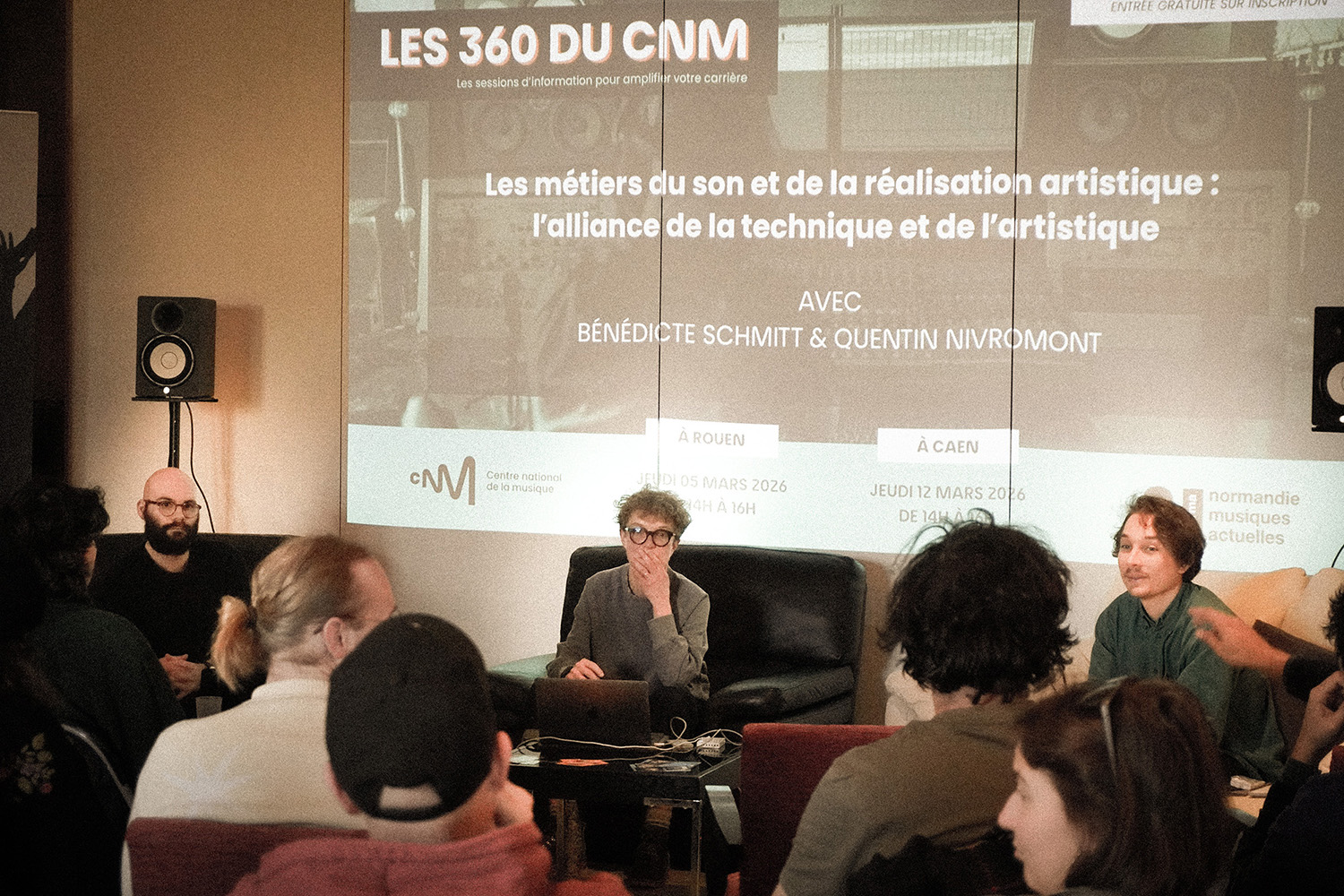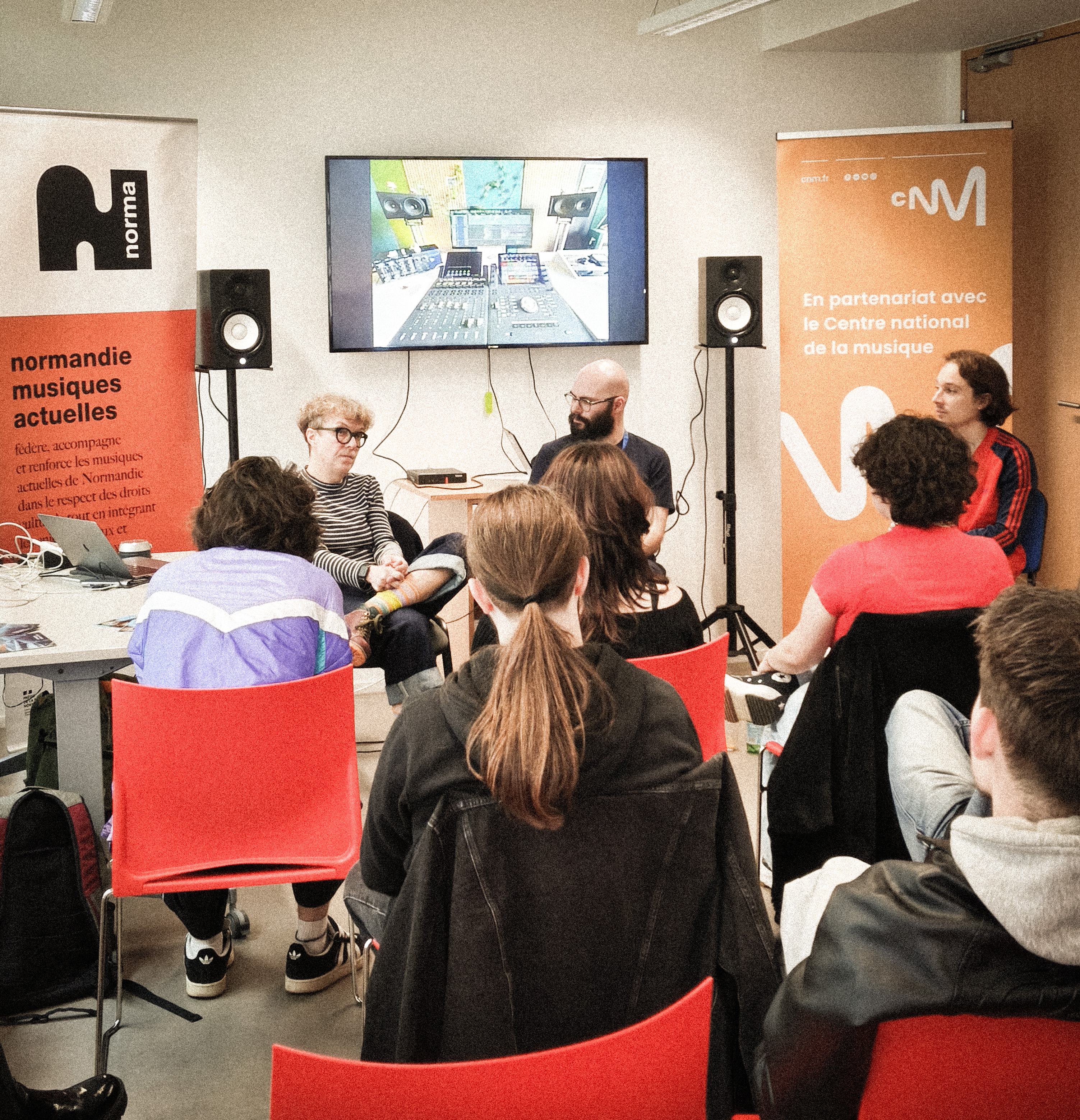 Nous avons également profité de ces journées pour accueillir en exclusivité l'équipe du Centre national de la musique pour un atelier CNM 360 dédié aux métiers du son et de la réalisation artistique. Ces rencontres ont affiché complet, et ça nous encourage à poursuivre ce travail en proximité avec vous, et avec elles et eux, autour des métiers qui constituent la chaîne professionnelle depuis la création artistique jusqu'à la production, la diffusion.