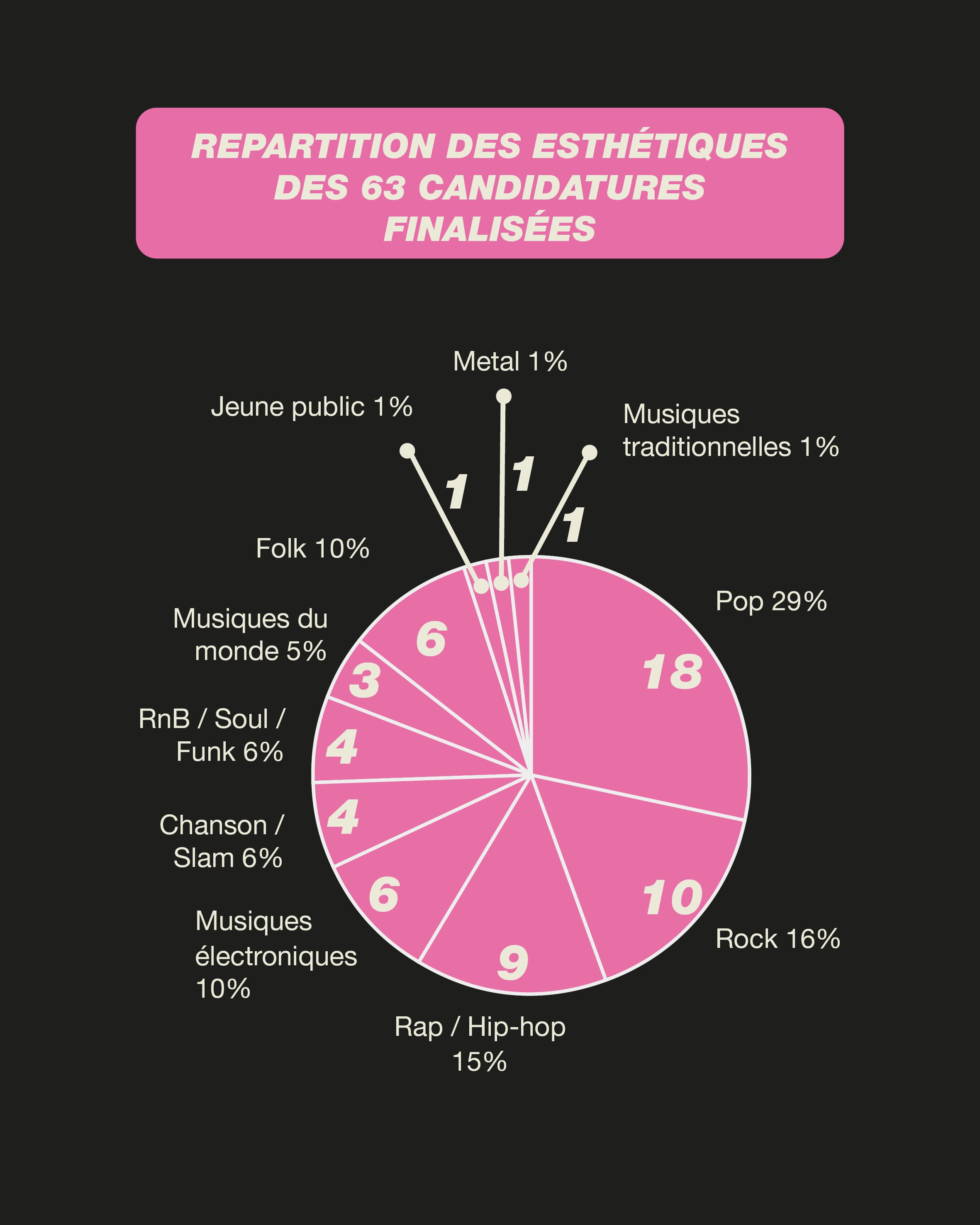 Pas moins de 63 candidatures ont été déposées et 60 répondant aux critères d'éligibilité seront présentées au comité de sélection composé de professionnel·les de la filière se réunissant le mercredi 1er avril à la SMAC La Luciole (Alençon).